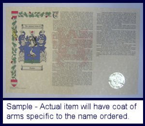 Products:- Printed on elegant, high quality 11 x 17 inch parchment paper, with Pea surname and coat of arms history over 1,800 words long